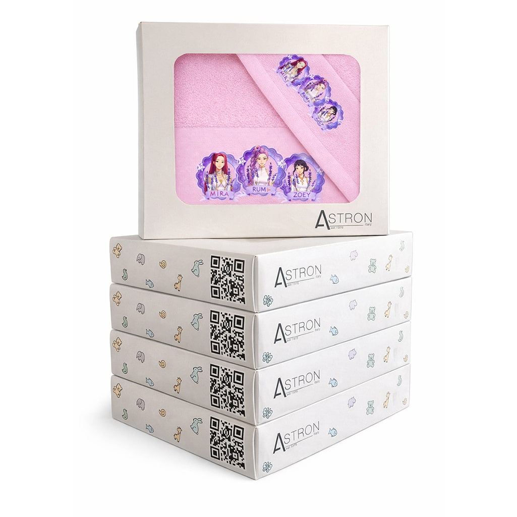 Παιδικές πετσέτες από την εταιρεία Astron Italy σε αποχρώσεις και σχέδια. Είναι κατασκευασμένες από 100% βαμβάκι.